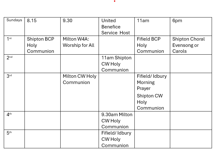 9:30am United Benefice Service with Holy Communion held in Milton Church